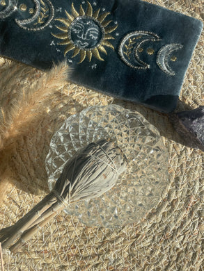a place to find sphere holders, sage bundles, sea salt candle holders, incense sticks, incense boards, crystals bowls & vintage glass