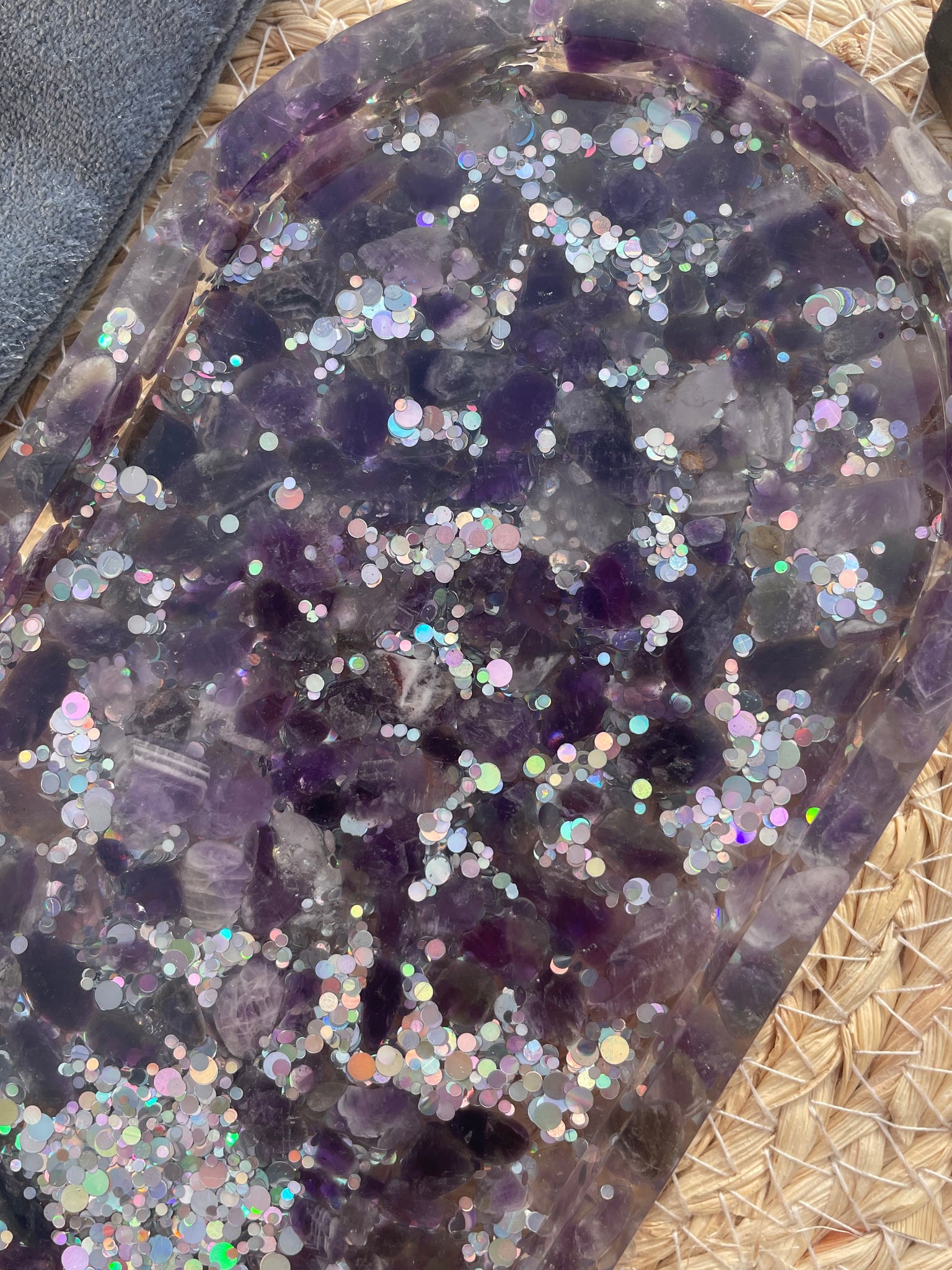 Made with real amethyst crystal chips and non toxic resin, this unique resin crystal dish can make the perfect gift. Or a gift for yourself ❤️