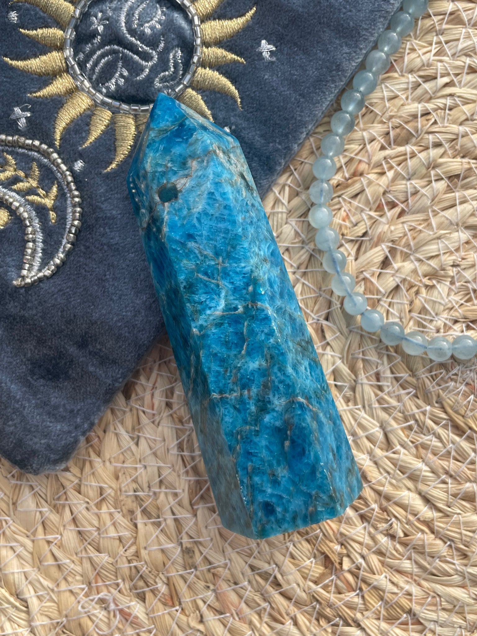 Add a touch of natural beauty to your space with our Apatite Tower. Featuring a stunning blue shade, this tower is sure to enhance any room.